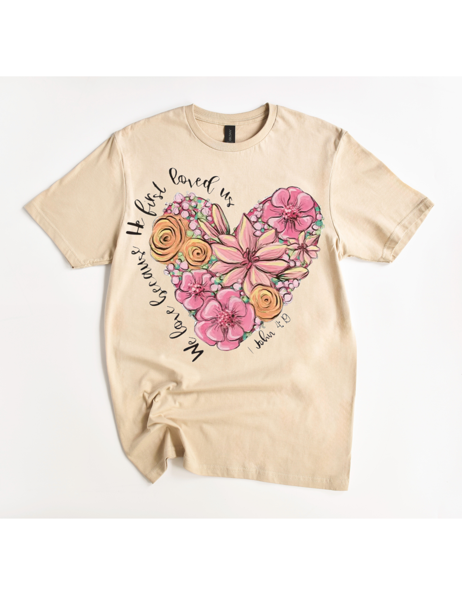 Show your love for Christ with our 1 John 4:19 T Heart Tee! This tee features the powerful verse and a heart design to remind you of God's love every time you wear it. Share your faith and inspire others with this comfortable and stylish tee.