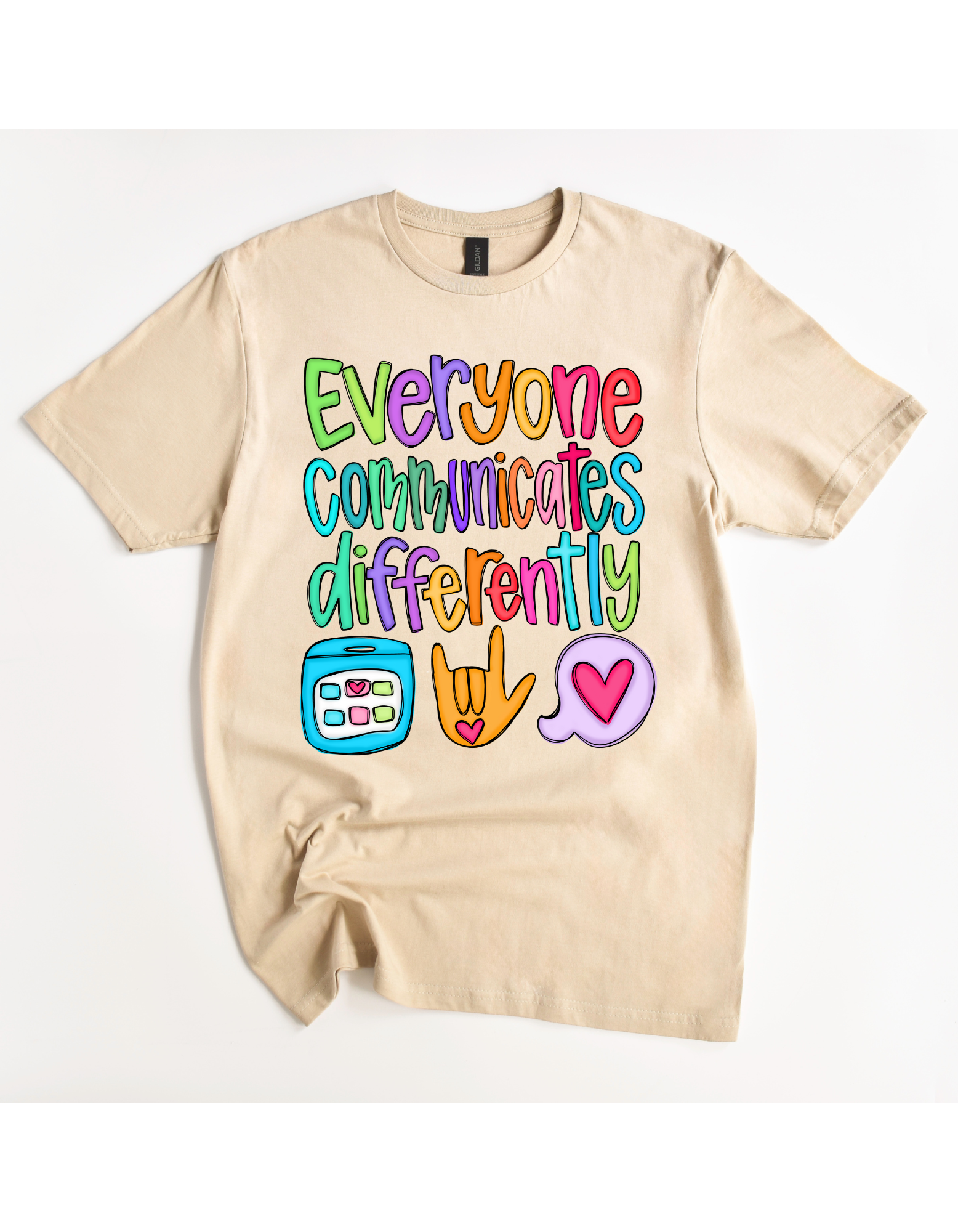 Discover the power of communication with our "Everyone Communicates Differently" tee! Embrace unique styles and personalities with this stylish and comfortable shirt. Show your belief in the importance of understanding and respecting individual differences. Perfect for any proud communicator. Get yours today!